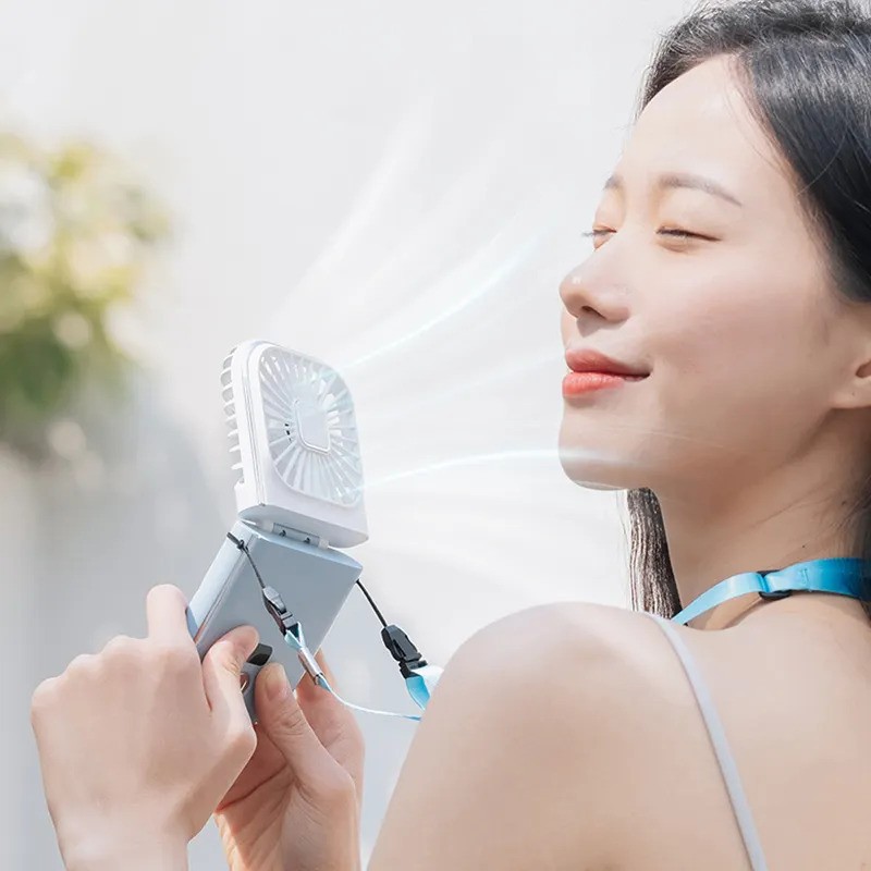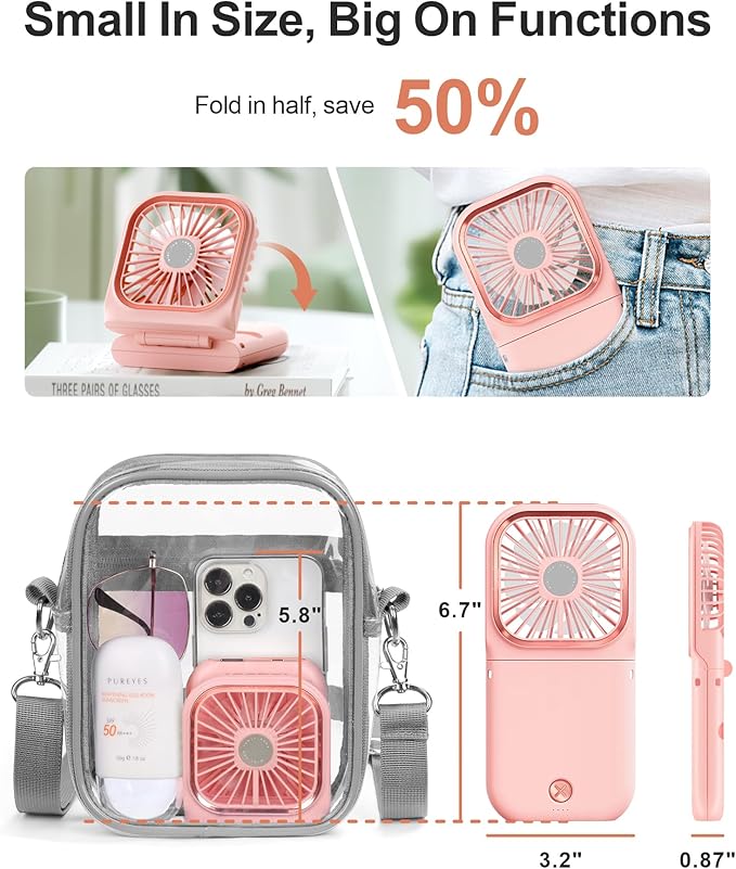 - Mini Foldable: You can put portable fan in your pocket or bag, also can wear this fan on a lanyard around your neck.Go to work, travel easy to carry. Don’t worry about sweat damaging your makeup