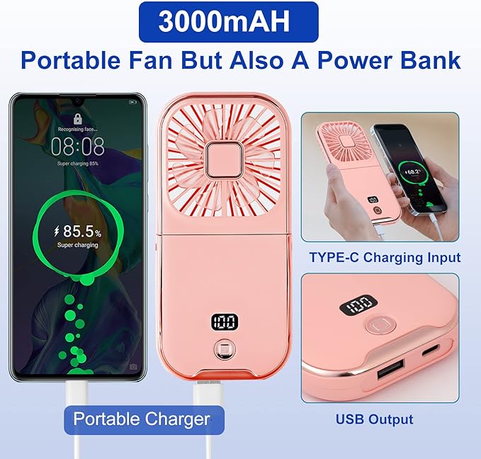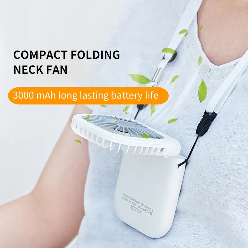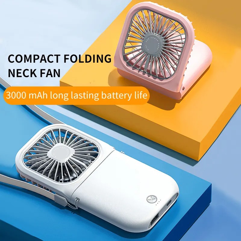 Portable Neck Fan Mini Quiet Handheld Personal Foldable USB Rechargeable Fan Operated for Home Office Outdoor Travel, 3000mAh Power Bank Hands Free Necklace Fans